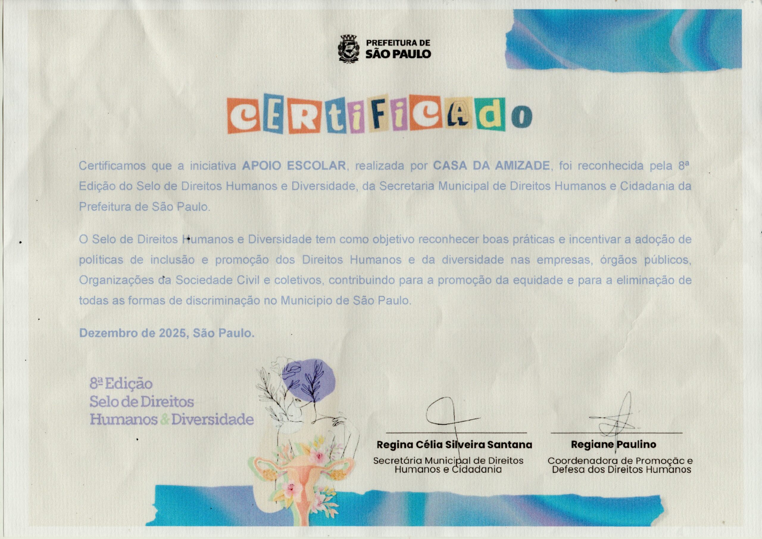 Hoje, no Centro Cultural de São Paulo, vivi um daqueles momentos que a gente guarda no coração. A comemoração do Dia Internacional dos Direitos Humanos reuniu tantas histórias, lutas e vozes que, por alguns instantes, parecia que todo o nosso esforço coletivo ganhava forma diante dos meus olhos. Ver instituições tão diversas sendo certificadas, representantes dos povos indígenas originários, da cultura afro-brasileira, da população LGBTI+, das pessoas com deficiência, de quem enfrenta a fome ou vive nas ruas, mexeu profundamente comigo. Foi emocionante ouvir a secretária Regina Santana, falar sobre o trabalho dela e sobre como nenhuma política pública existe sem o empenho real de quem está na ponta, segurando a vida do outro com cuidado e compromisso. Saí tocada pela força de cada causa e pela certeza de que ainda há muito a fazer.