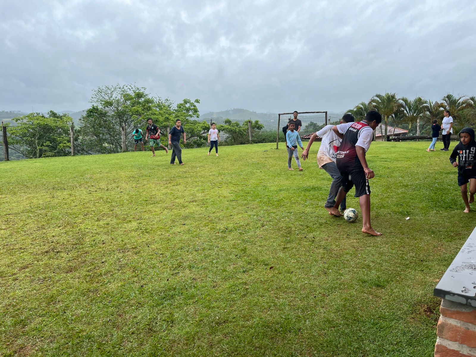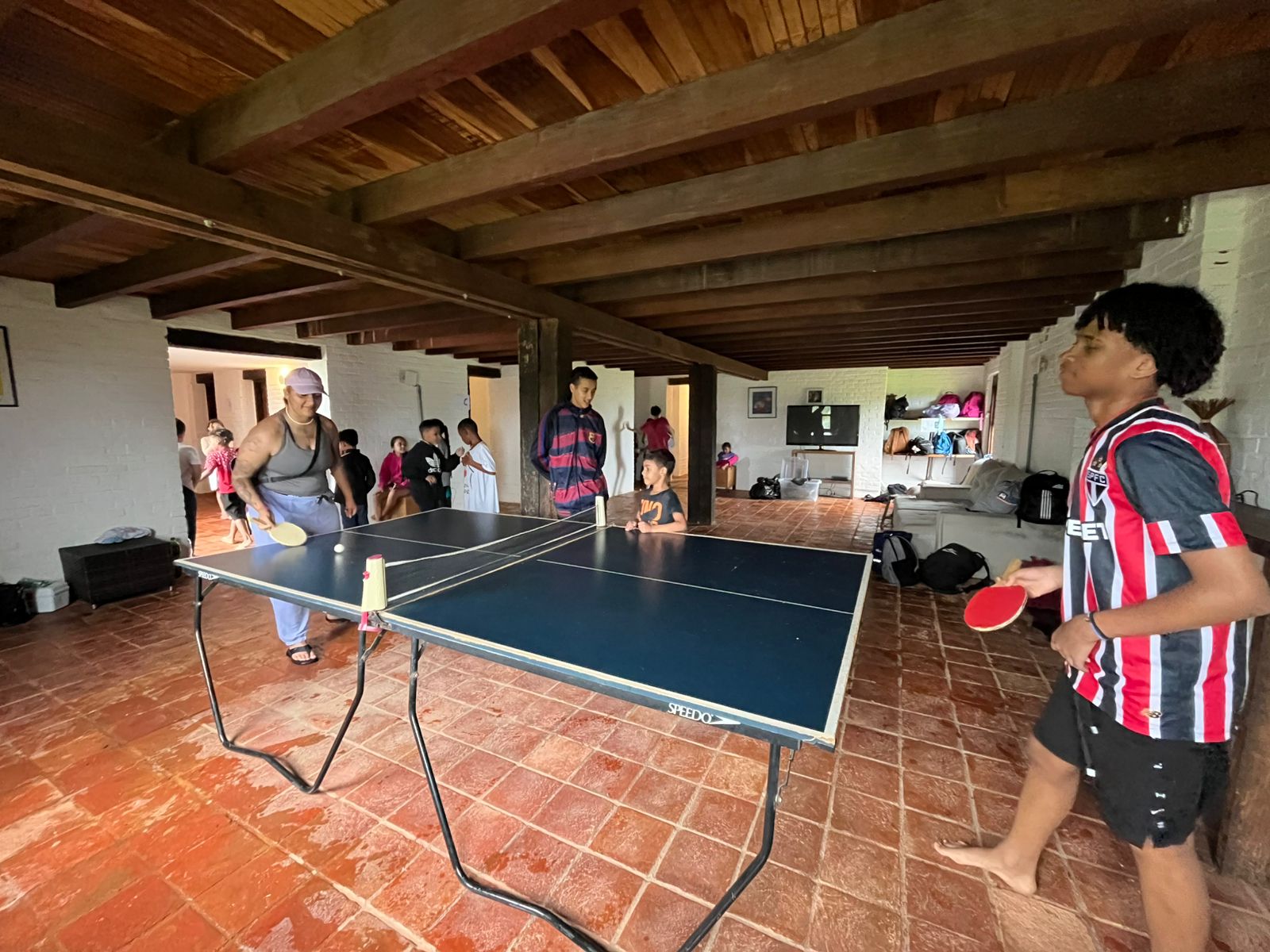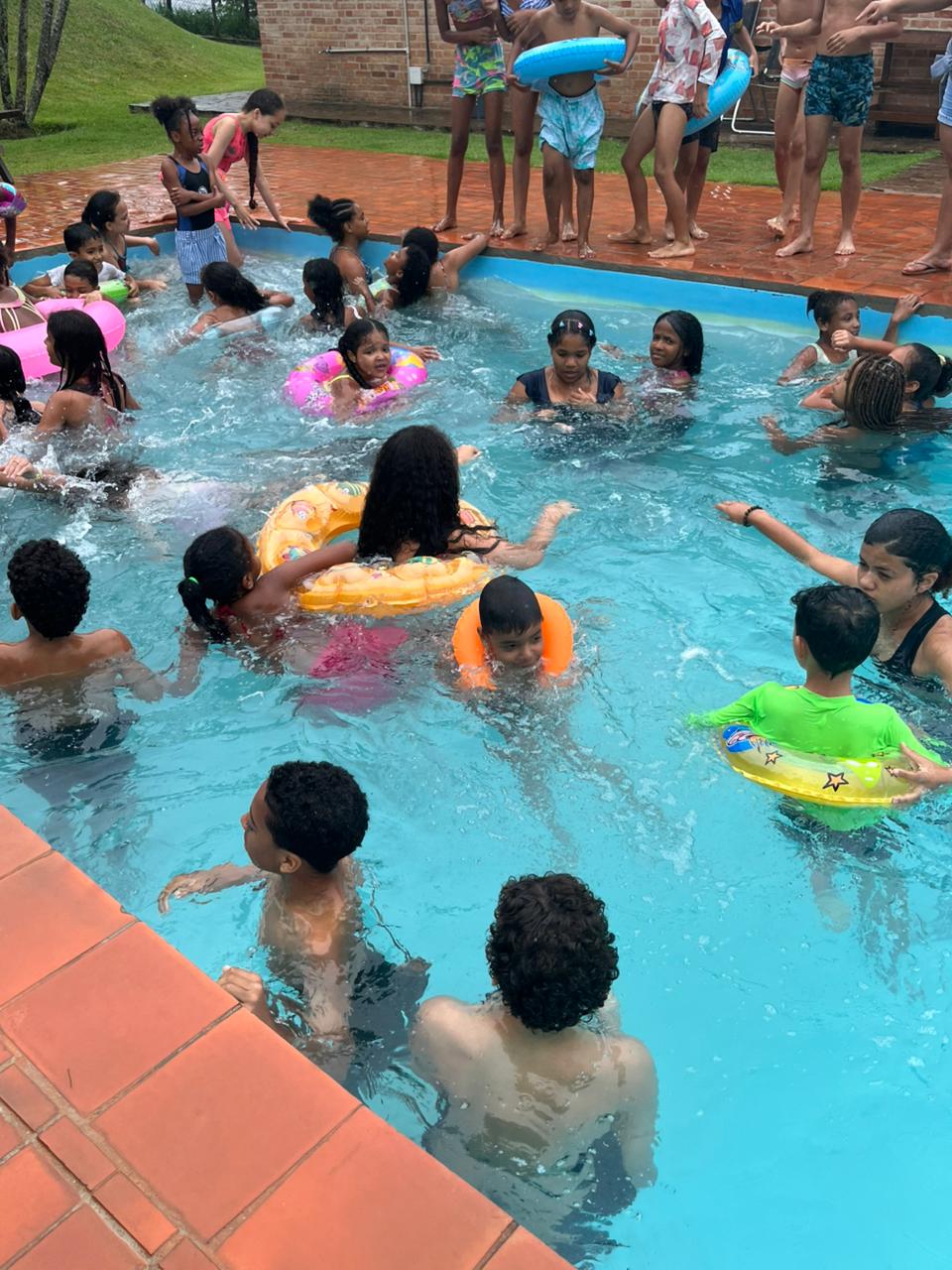 Durante o passeio, os alunos aproveitaram atividades como futebol, ping-pong e, claro, a piscina, sempre a queridinha da turma. Após os momentos de lazer, todos se reuniram para o almoço, o strogonoff preparado pela Rita estava delicioso. Depois, celebramos os aniversariantes do bimestre com parabéns, os alunos com maior frequência ao longo do ano e aqueles com mais tempo de Casa.