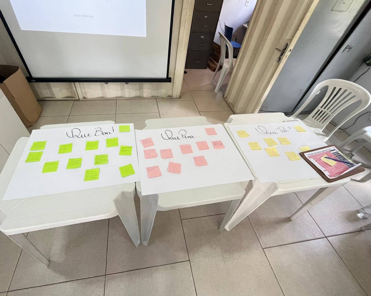 Iniciamos a reunião com uma dinâmica em que os participantes deveriam pontuar três aspectos: