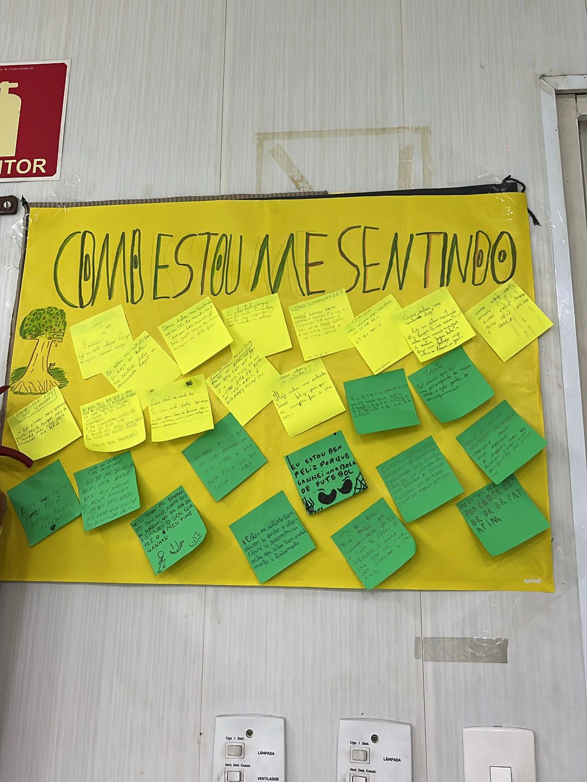 Todas as turmas participaram de momentos de reflexão, em que foram abordados temas essenciais como o cuidado com as emoções, a importância de compreender os próprios sentimentos e o respeito à vida. As ações incluíram a interpretação de textos relacionados ao tema, rodas de conversa e a produção de cartazes que expressaram mensagens de acolhimento, empatia e esperança.